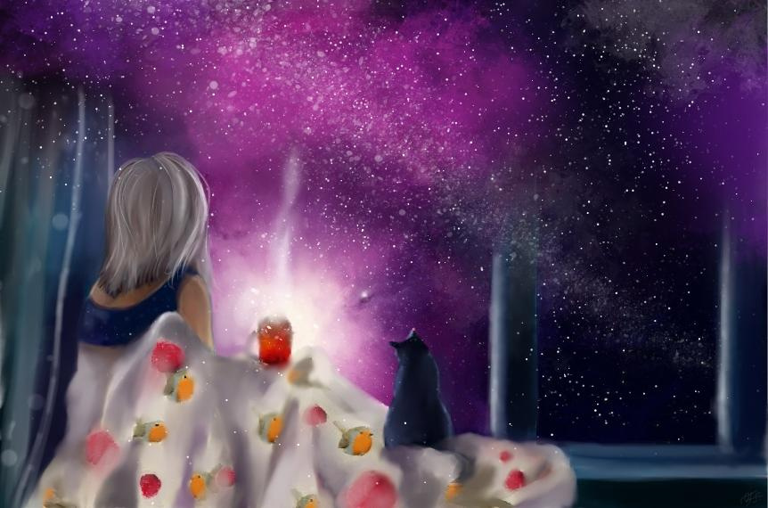 В детстве ночное небо для меня было чем-то неизвестным и загадочным. Мне казалось, что за ним находится что-то волшебное, может быть даже город, скрытый от людских глаз. С возрастом волшебство рассеивалось, я изучала различную литературу, пересмотрела всевозможные фильмы, даже хотела быть астрономом, изучать звезды и планеты. Но, увы, с моими познаниями и постоянными переездами, путь в науку для меня закрыт.