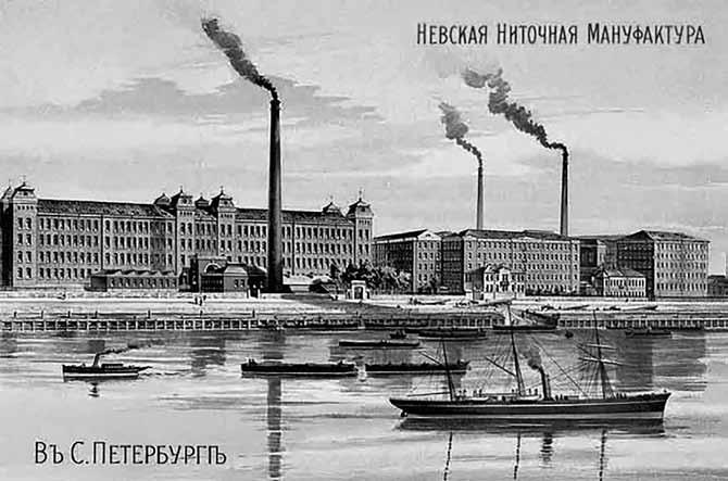 В надворной постройке установили паровые машины. Одну из них назвали «Верой», две другие, поставленные несколько позднее, «Надеждой» и «Любовью». Строительство новой фабрики, принадлежащей высочайше утвержденному Акционерному обществу под названием «Компания Невской бумагопрядильной мануфактуры», завершилось в 1859 г., в его производственных корпусах было установлено самое современное оборудование, привезенное из Англии.