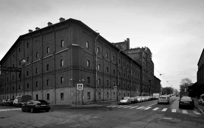 Из построек Бернгарда сохранилось производственное здание, расположенное с южной стороны Курляндской улицы, напротив солодовни (1897). Его можно отнести к ранним образцам функциональноконструктивного направления. На гладкую плоскость кирпичной стены как бы наложены вертикали пилястр и горизонтали профилированных тяг. Эти элементы образуют единую «каркасную» структуру, отвечающую конструктивной организации пространства с внутренним металлическим каркасом. В объем этого сооружения включен бродильный цех, построенный ранее Бонштедтом. Подобная многослойность, произошедшая за счет сочетания разновременных пристроек и надстроек, присуща не только отдельным корпусам, но и всему комплексу в целом.
