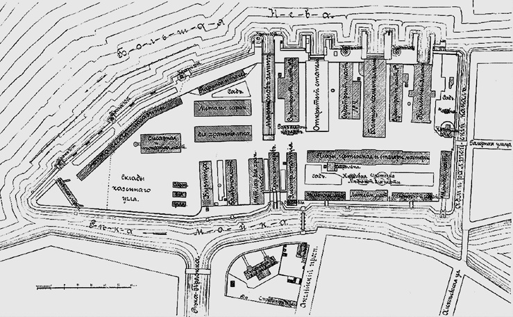 Теперь предполагалось создать на базе верфи в устье Фонтанки образцовое судостроительное предприятие, расширив его в сторону Сального буяна. Развитие Нового адмиралтейства признавалось нерентабельным, и его намеревались постепенно ликвидировать. Эту идею, выдвинутую корабельным инженером Д.В. Скворцовым, активно поддерживал начальник Адмиралтейского завода генерал-майор П.Е. Черниговский[38].