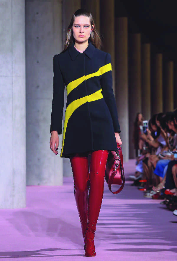 Показ коллекции прет-а-порте сезона осень/зима 2015 года модного дома Dior в Токио. Силуэт и материалы перекликаются с костюмом Софи Лорен, созданным дизайнером дома Dior Боаном, из фильма «Арабеска».