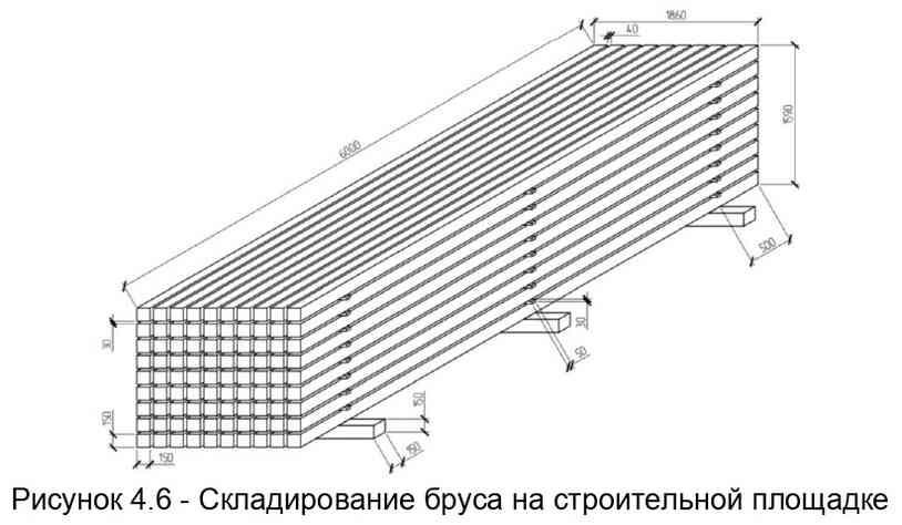 Схема складирования бруса на строительной площадке приведена на рисунке 4.6.