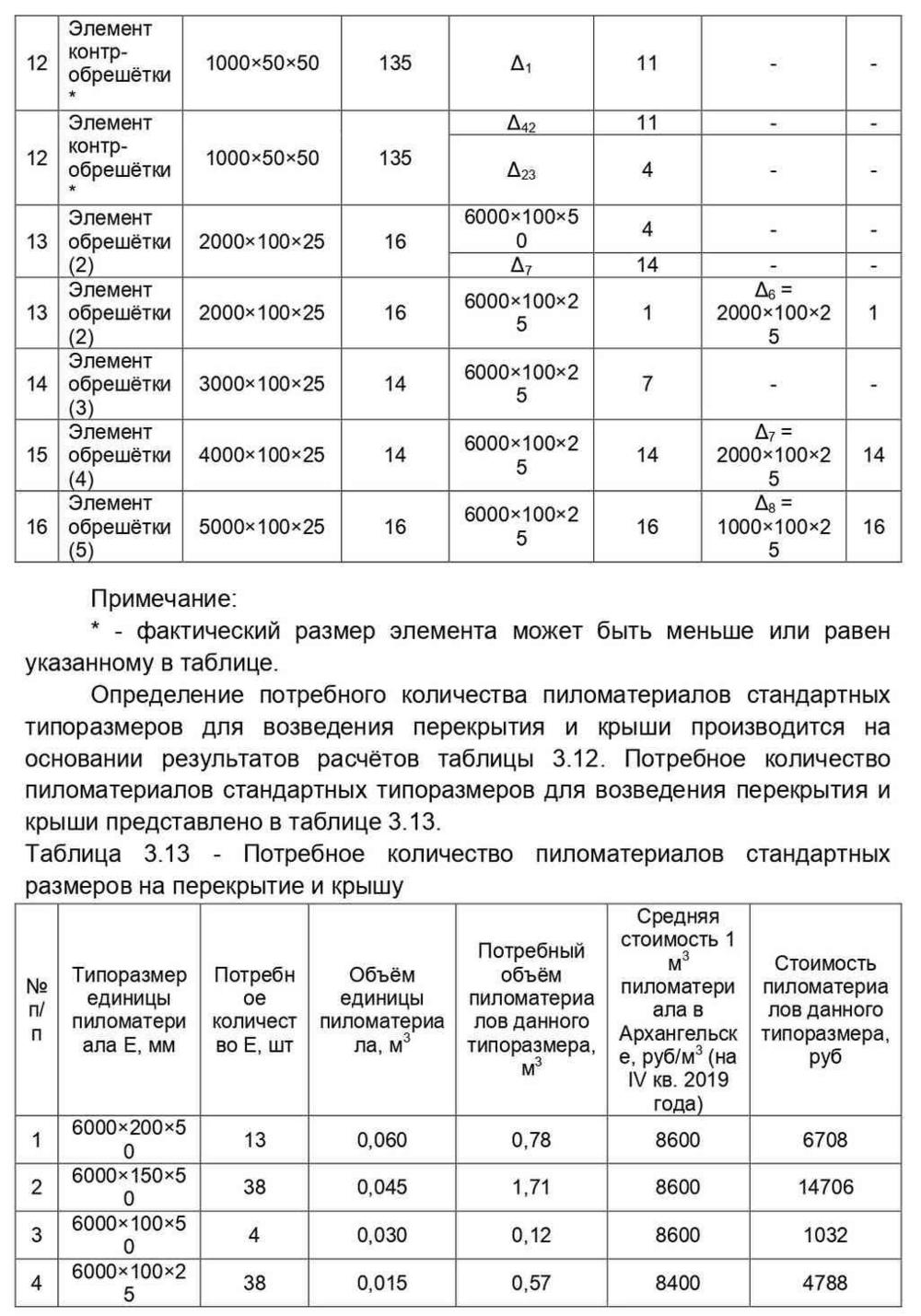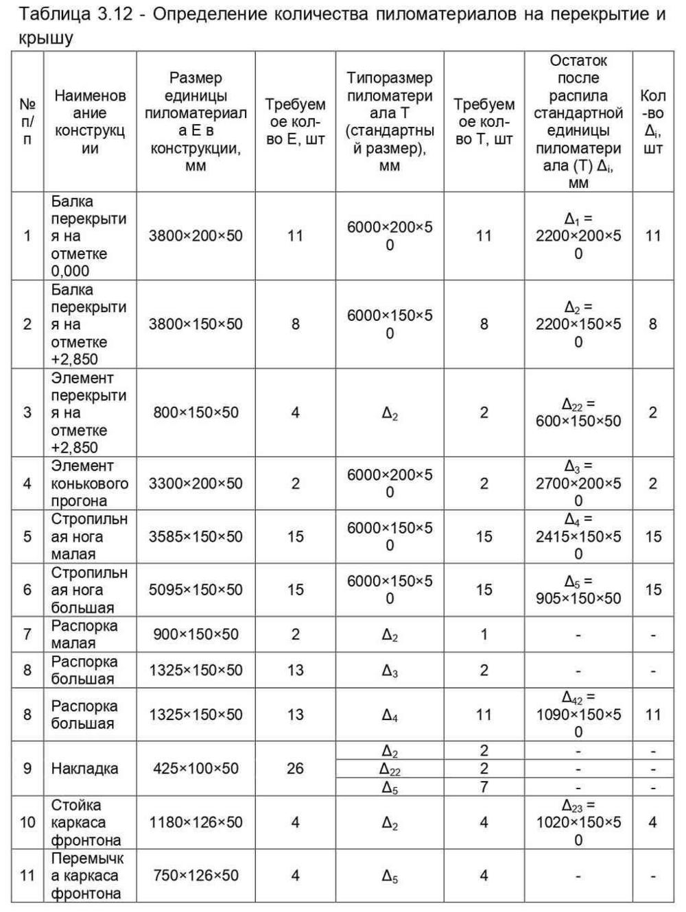 Рассмотрим определение потребного количества пиломатериалов на перекрытие и крышу. Результаты определения представлены в таблице 3.12.