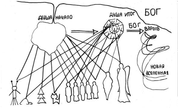 Пациент: «Любовь Это взрыв. Душа переполнена любовью, так же как переполнена ей сфера Бога. Душа не может соединиться с Богом, она может только отдавать. Она взрывается. Это Большой Взрыв родилась новая Вселенная»