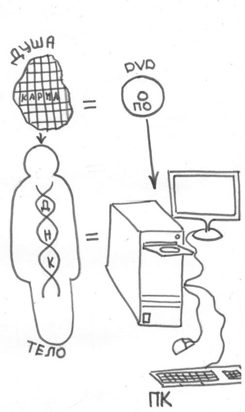 На основании вышеизложенного можно с уверенностью сказать, что Душа, имеет свою программу развития. Эту программу земляне называют «КАРМА». Вообще, я на лекциях часто говорю о сходстве человека с компьютером. Собственно, на компьютер похожа и наша вселенная.