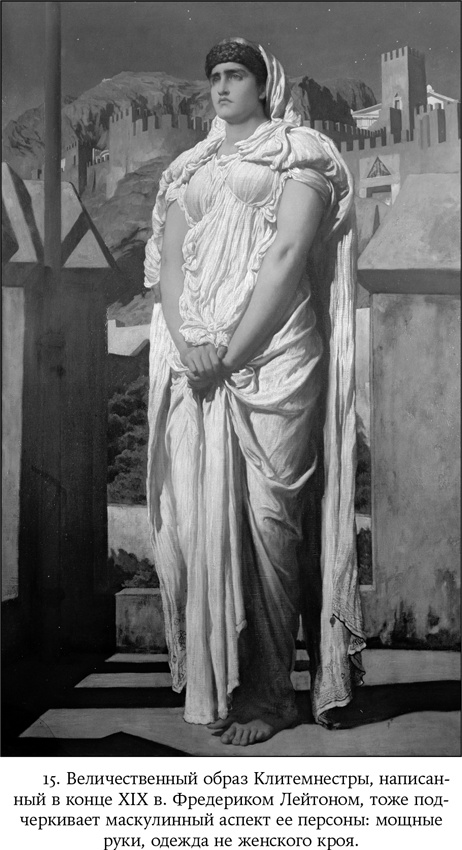 Обратимся к одной из самых ранних известных нам античных пьес, «Агамемнону» Эсхила, впервые поставленной в 458 г. до н.э., и вы увидите, что антигероиня пьесы Клитемнестра олицетворяет собой именно эту идеологию. По сюжету она становится фактическим правителем своего полиса, пока ее муж сражается на Троянской войне; и в то же время она перестает быть женщиной. Говоря о ней, Эсхил раз за разом употребляет мужские термины и маскулинный язык. Например, в самых первых строках пьесы героиня описывается как νδρόβουλος это слово трудно перевести точно, оно означает что-то вроде «с мужскими замыслами» или «думающая, как мужчина». И конечно же, незаконно присвоенную власть Клитемнестра применяет в деструктивных целях, убивая в купальне вернувшегося с войны мужа. Патриархальный порядок восстанавливается лишь после того, как дети Клитемнестры, сговорившись, убивают ее.