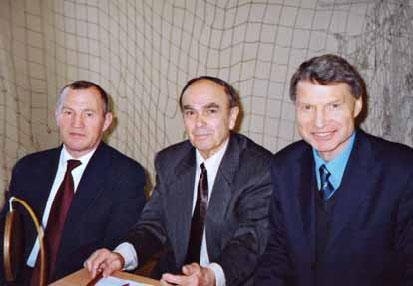 Слева направо: Мартынов А. С., к.п.н., мастер спорта и судья международной категории по боксу; Ловелиус Н. В., д.б.н., Олимпийский арбитр; Киселев А. И., к.т.н., заслуженный мастер спорта и заслуженный тренер СССР, двукратный серебряный призер по боксу Олимпийских игр.