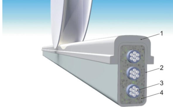 1 головка рельса; 2 корпус; 3 струна; 4 бетон.