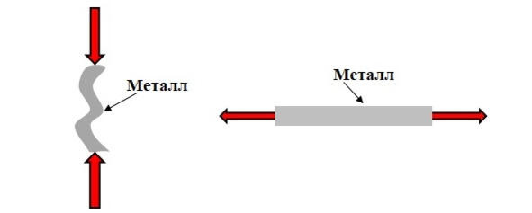 Металл хорошо выдерживает нагрузки на растяжение, но плохо на сжатие.