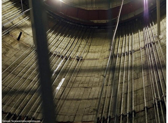 Внутри башни имеется система натянутых тросов, с общей силой натяжения 10400 т. Эти тросы как бы сжимают башню изнутри.