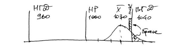 Смоделируем ситуацию, похожую на самую первую из рассмотренных (п. 9.1). Пусть детали, выходящие на верхнюю границу допуска, отбраковывают. Далее, при сборе и обработке данных рассматривают только детали внутри поля допуска.