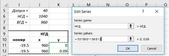 Задание. Добавьте данные из табличек для границ допуска на диаграмму.