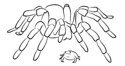 Тарантулы Xenesthis immanis настолько велики, что нападают не только на мелких грызунов, но и на змей. Тем более удивительно, что это смертельно ядовитое чудовище способно нежно ухаживать за собственным домашним животным. Маленькие лягушки вида Chiasmocleis ventrimaculata не просто проживают в гнезде тарантула, но и пользуются его тщательной заботой и защитой. Дело в том, что яйца паука являются излюбленным лакомством муравьев и других насекомых, а маленькие лягушки охотятся на них, защищая таким образом кладку.