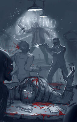 Ниже первый эскиз, нарисованный эксмовским художником по моей идее. Однако перед выходом в печать концепт рисунка был изменён, вопреки мне. И оригинал сейчас другой, к сожалению.