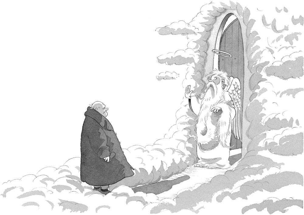 Я долго стоял перед райскими вратами. Но делать было нечего, пришлось возвращаться на землю. Я медленно спланировал сквозь толщу облаков вниз и приземлился на заднем дворе своей старой лавки.