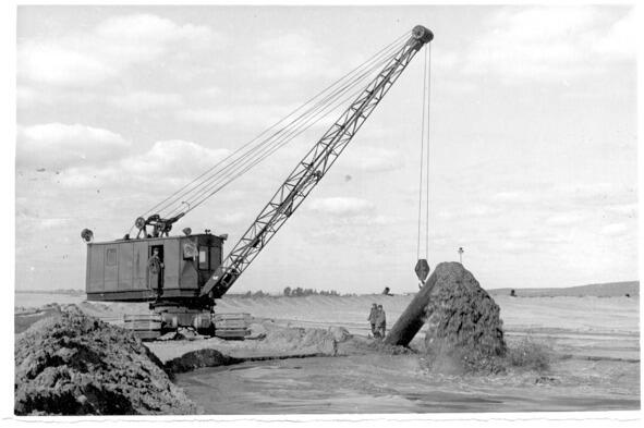 Рис.1. Безэстакадный нивыв потины Куйбышевской ГЭС земснарядом 100080 в 1954 г.