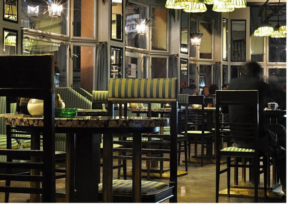 В Москве. Шурик с Еноком сидят в ресторане. На против на эстраде музыканты тихо переговариваются между собой, настраивают инструменты