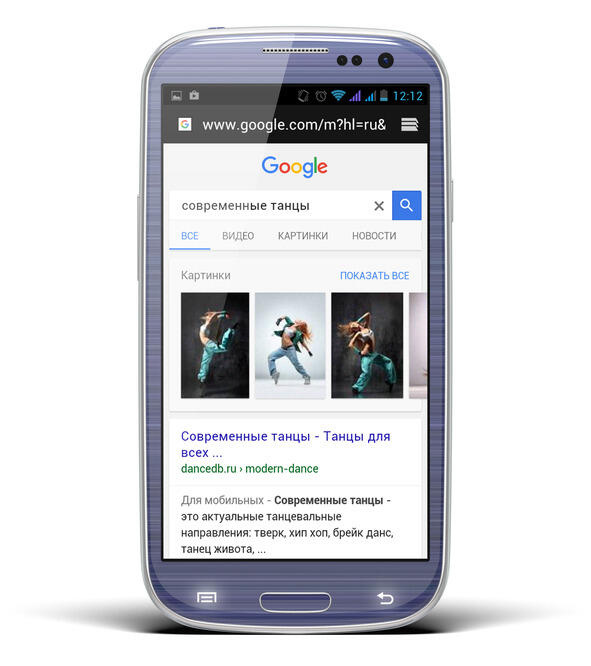 Рис. 1. Пометка «для мобильных» на сайтах в поисковой выдаче Google