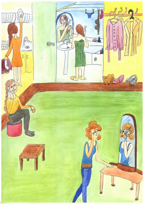 Девочки в обычном режиме собираются долго и основательно. Но в таких ситуациях готовность просто моментальная. По комнате проносится вихрь. Попутно с приведением в порядок самих себя мы успели даже снять все не вполне приличествующие приходу гостей детали девчоночьего гардероба из ванной. Прошло совсем мало времени, но мы уже невзначай распределились по комнате, постреливая рассеянными взглядами на дверь и прислушиваясь к шуму лифта. Со стороны казалось, будто ничто не нарушило нашего спокойствия и мы просто сидим в наших обычных позах и занимаемся привычными делами. «Ой, кто-то звонит в дверь!» Кто бы это мог быть? И лениво так, не спеша, встаём к двери.