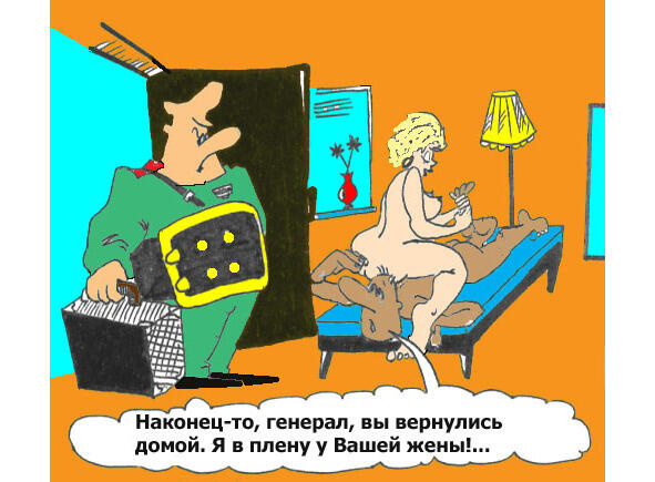 И что бы не оставлять в кабинете (вдруг кто-то наткнется на «вещдок»), он положил трусики во внутренний карман кителя. Приходит домой, вешает китель на вешалку. Жена решила проверить, не оставил ли муж «заначку». Увидев трусики, идет к мужу: