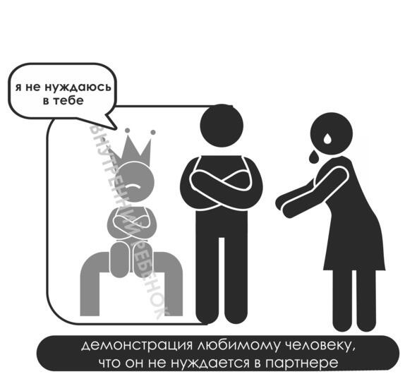 2. Демонстрация, что я не нуждаюсь в партнере. Если вы находитесь в паре с человеком с пренебрежительно-избегающими стратегиями, то будете все время чувствовать, словно вы навязываете ему свою любовь, в которой он не сильно-то и нуждается. И это может вас обижать и унижать. Своим поведением эти люди как будто мстят той ключевой фигуре в их жизни их маме за то, что в детстве чего-то от нее не получили.