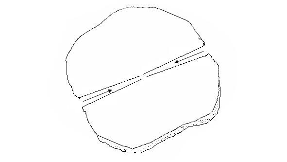 Рис. 2. Нарастание деформации силовых нитей пространства от периферии к центру материального тела