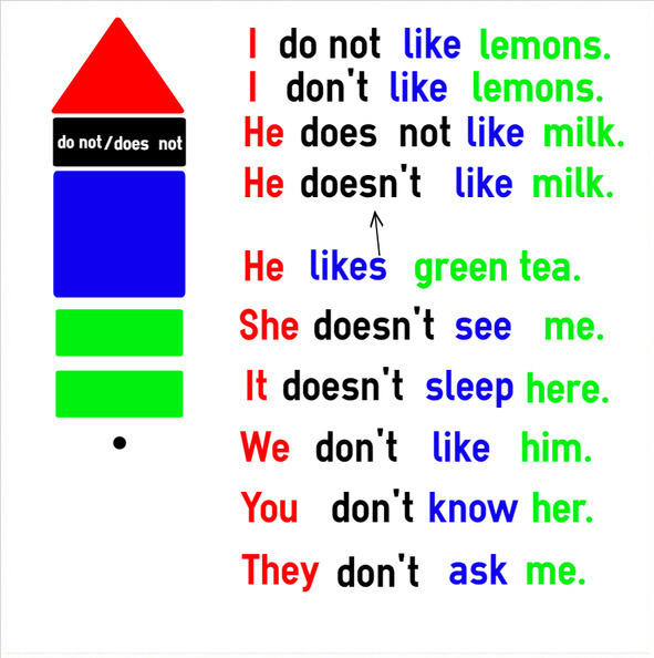 Говоря грамматическим языком, окончание «S», которое выражает третье лицо единственного числа настоящего времени, в отрицательных (и в вопросительных) предложениях перемещается от смыслового глагола к вспомогательному.