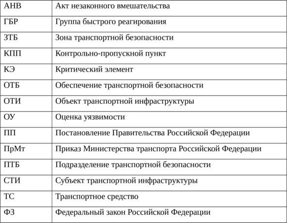 Перечень принятых сокращений