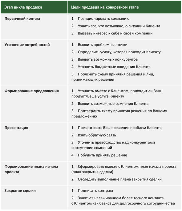 Матрица целей на этапах цикла продаж