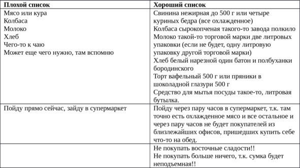 г) в соответствии с п. в) решите, нужно ли идти в магазин именно сейчас или лучше пойти через пару часов или в выходные утром, или это можно совместить с походом, скажем, на почту или еще куда;