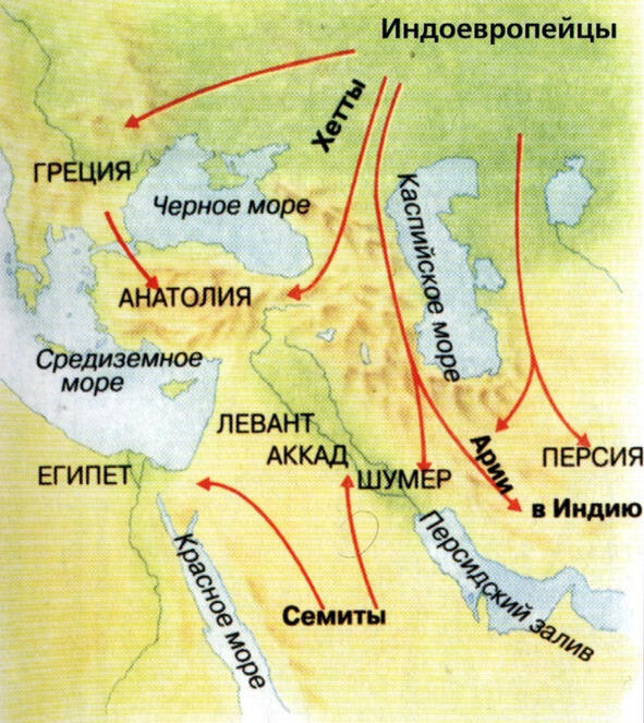 Около 4 тысяч лет назад племена индоевропейцев, или тогда еще ариев, покинули свою родину в современной южной России. Некоторые из них двинулись к югу на земли, ныне находящиеся в границах Ирана, и далее в Индию. Другие переселились в Анатолию (территория современной Турции).