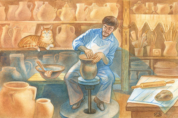 Сидя под палящим солнцем, мальчик наблюдал, как молодой человек сосредоточено откалывал куски от большой скальной глыбы.