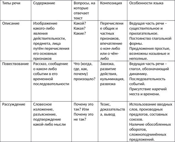 Но учтите, что эти типы речи существуют в чистом виде только на начальном этапе обучения сочинению, а зрелое, полноценное сочинение это всегда их гармоничное сочетание: повествование с элементами описания, рассуждение с элементами повествования и т. п.