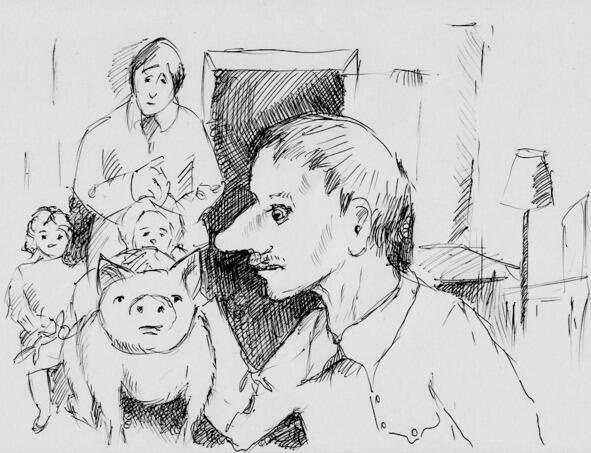 В это время Николай Алексеевич заперся у себя в спальной комнате, лег на кровать и закрыл голову подушками. Всё ждал, что ужасный предсмертный крик бедного поросенка прорвется сквозь все преграды. Но, к счастью, ничего не услышал. И от этого немного успокоился. Пересел на кресло возле окна выходящего в сад и просидел так часа полтора.