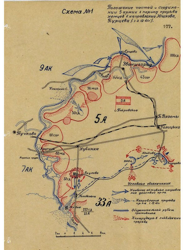 1. Третий б-н 1089 сп, усиленный 3 орудиями ПТО (45 мм), подходя к с. Криволучье в 8.00 14.12.41. был атакован с фронта 3 танками, а затем 2 танками с фланга с дистанции 500600 метров. По команде командира батальона капитана Мильера, бат-н беспорядочно начал развертываться под уничтожающим огнем танков противника. Орудия ПТО, сделав по несколько выстрелов, вышли из строя. Шедшая впереди батальона разведка в количестве 1015 человек на дистанции 50 метров, естественно не могла предупредить б-н о танках противника, других же мер охранения у бат-на не было, а так как батальон шел в походном порядке, развертывание запоздало. Танки противника начали охватывать б-н с трех сторон давя живую силу, обоз и орудия. В результате 30 минутного боя (бойцы и командиры отстреливались из винтовок по танкам) батальон потерял до 150 чел. убитыми и до 60 ранеными. В числе убитых к-р б-на Мильер, комиссар б-на и весь комсостав 9 и 8 рот.
