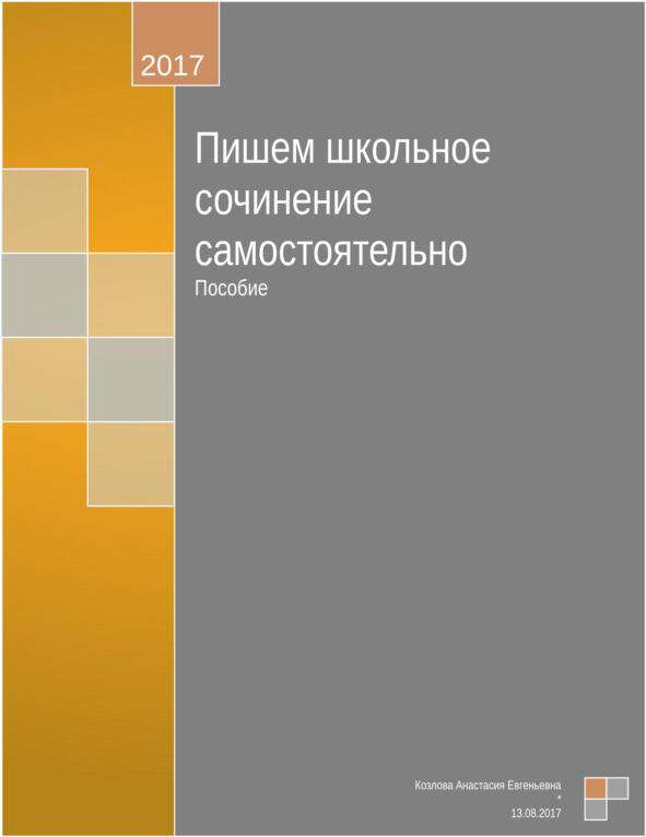 Оно составлено таким образом, чтобы каждый, взяв его в руки, мог найти по ключевым словам необходимый ответ и схему к тому сочинению, которое предстоит написать.