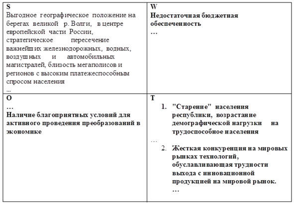Еще раз уточним истоки одной из наиболее частых ошибок проведения SWOT-анализа, в качестве иллюстрации рассмотрен SWOT-анализ, выполненный при разработке стратегии одного из регионов страны.