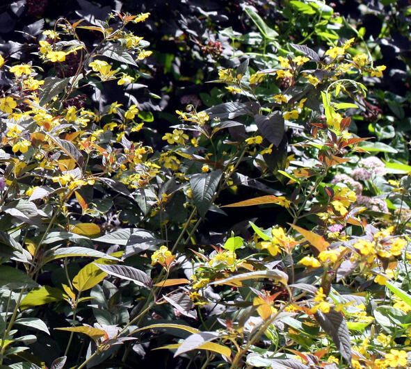 Вербейник точечный образует объемные кусты, состоящие из свечей собранных из золотистых звездочек цветов. Цветение вербейника приходится на начало лета, когда еще мало летних цветов, именно поэтому его стоит применять в практически любом саду.