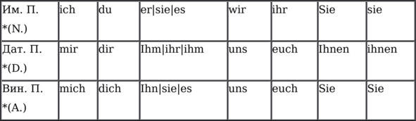 *Именительный падеж в немецком языке называется der Nominativ, дательный der Dativ, винительный der Akkusativ, и соответсвенно сокращения: N., D., A.