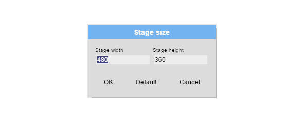 Изменить размеры сцены. Ширина изменяется в пределах от 480 до 1 000 000, а высота от 180 до 1 000 000. Не имеет смысла делать сцену размером больше экрана.