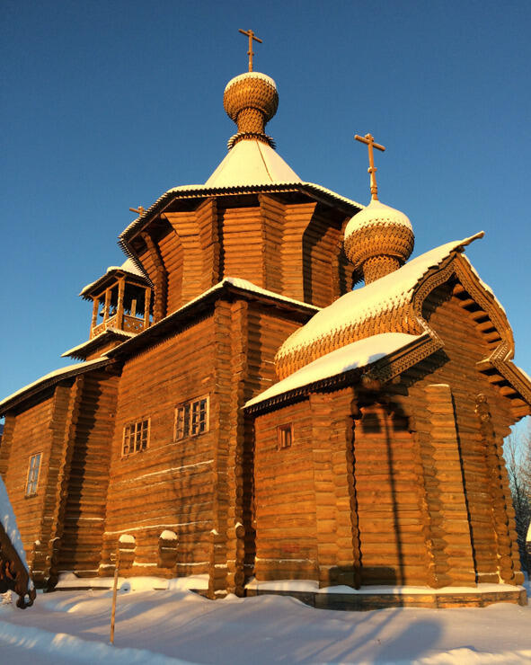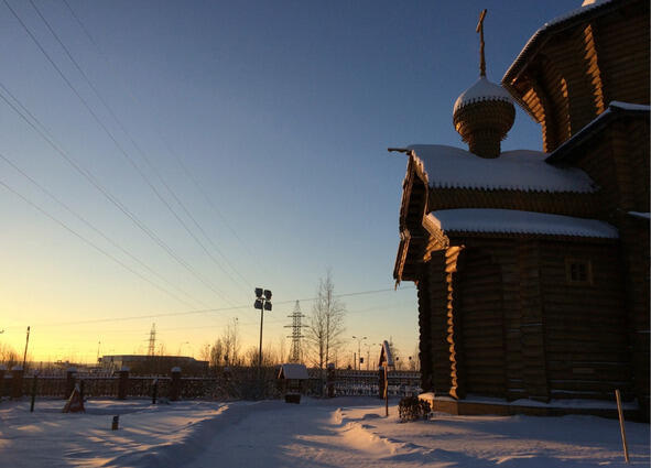 Несмотря на то, что в столь раннее время объекты музея ещё были закрыты, нам удалось попасть на утреннюю службу в Храм во имя всех Святых в земле Сибирской Просиявших.