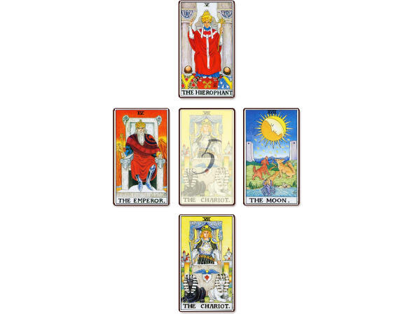 Позиция 1 «Император», позиция 2 «Луна», позиция 3 «Иерофант», позиция 4 «Колесница».
