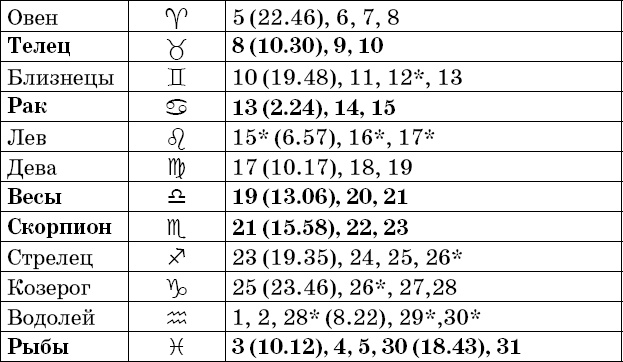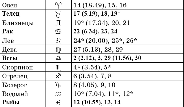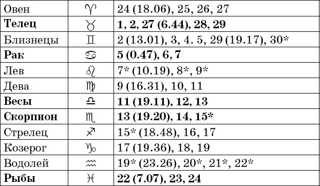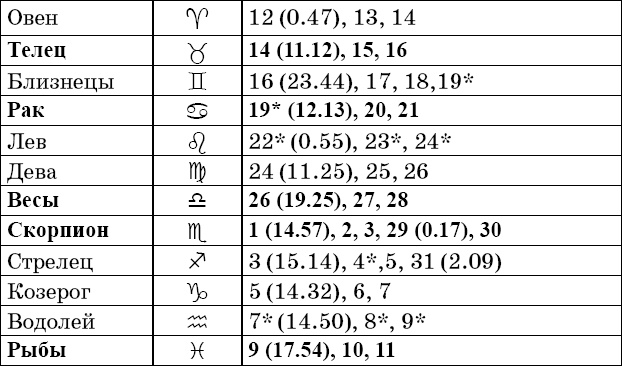Прохождение Луны через знаки зодиака в ноябре