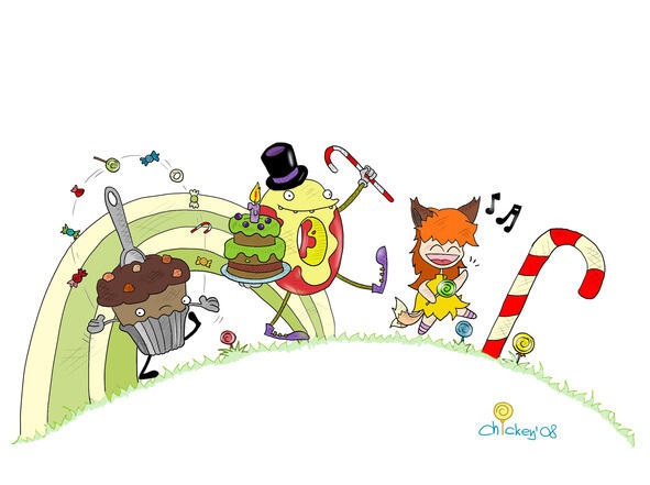 В витринах красовались самые разные и, готова поспорить, самые вкусные торты и пирожные на всем белом свете! Чего тут только не было и воздушные, похожие на замки из облаков, клубничные и лимонные. И слоеные с карамелью и орехами. И один ярко-оранжевый апельсиновый, с кусочками ананасного желе, и шоколадный, покрытый розовой глазурью и украшенный вишенками. А также маленькие пирожные в форме цветочков (малиновые), листочков (мятные) и звездочек (медовые с миндалем). Почетное центральное место, прямо на прилавке, возле старинного кассового аппарата, занимал огромный именинный пирог с изюмом, пропитанным ромом. Он был покрыт ванильным кремом, белым шоколадом и засахаренными вишнями. Последний ярус пирога украшало двадцать красно-белых полосатых свечей.