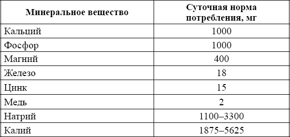 Суточная потребность в некоторых минеральных веществах у спортсменов (по М. Уильямсу, 1997)