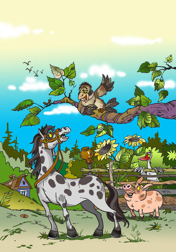 Только воробей ничего не говорит, сидит себе на ветке и чирикает. Лошадь очень удивилась: такого с ней ещё не было. Спрашивает у воробья: