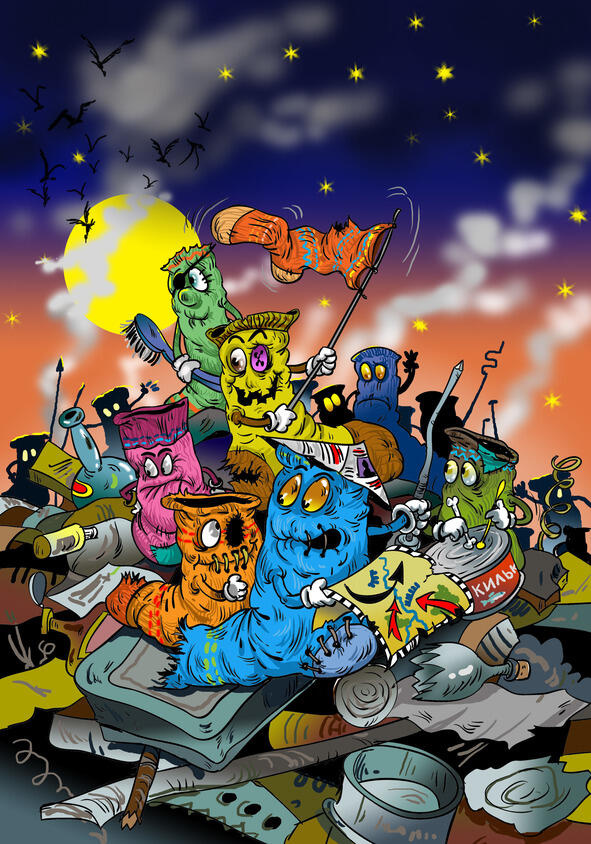 Весь день левый носок бродил по городу в напрасных поисках, ведь он не знал ничего о том, куда братишка мог пропасть. Приближалась ночь. Левый устал и прилег отдохнуть под кустом.