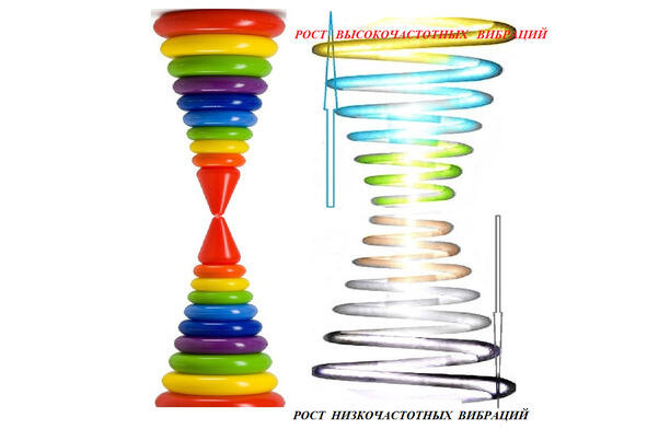 Энергия верхней (перевёрнутой) пирамидки это высокая, позитивная, созидающая энергия. Мы создаём её своим физическим организмом, вибрируя высокими частотами (высокочастотными вибрациями): ощущая в этот временной отрезок удовольствие, наслаждение, эйфорию, блаженство, кайф