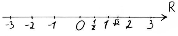 Обозначим на числовой прямой иррациональные числа, чтобы получить множество действительных чисел R (рис. 7).