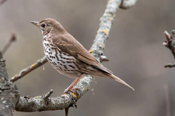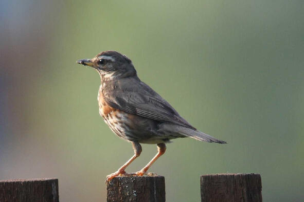 Дрозд, о котором можно сказать, как о певце, так и называется певчий(Turdus philomelos) рис. 52. Тоже обитатель лесов с подлеском, его можно встретить в московских парках и лесопарках в Измайлово, Царицыно и др. В отличие от трёхцветного рябинника окраска певчего более однотонная, с преобладанием бурых и коричневых цветов. По размеру он меньше рябинника, но крупнее скворца. Песня состоит из различных мелодичных свистов, среди которых особо выделяются флейтовые.